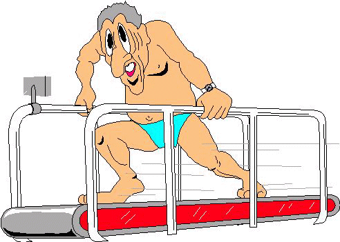 Started the morning at 6:00 a.m. Tough to get up, but worth it when I arrived at the health club and Tanya was waiting for me. She’s something of a goddess, with blond hair and a dazzling white smile. She showed me the machines and took my pulse after five minutes on the treadmill. She seemed a little alarmed that it was so high, but I think just standing next to her in that outfit of hers added about ten points. Enjoyed watching the aerobics class. Tanya was very encouraging as I did my sit-ups, though my gut was already aching a little from holding it in the whole time I was talking to her. This is going to be GREAT!!