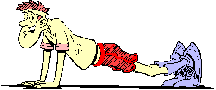 Tanya was waiting for me with her vampire teeth in a full snarl. I can’t help it if I was half an hour late, it took me that long just to tie my shoes. She wanted me to lift dumbbells. NOT A CHANCE, TANYA! The word "dumb" must be in there for a reason. I hid in the men’s room until she sent Lars looking for me. As punishment she made me try the rowing machine. It sank.